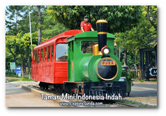 There are two miniature trains in Taman Mini Indonesia Indah: one is only circling Indonesia Children Palace up to Children Art Center and waterfall, while the other one goes around TMII. The later helps you see the landscape of TMII, all of the pavilions, gardens, museums, theaters, etc.